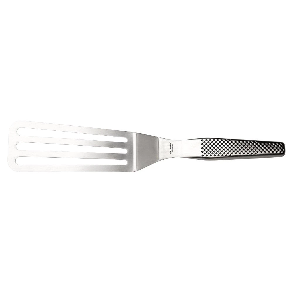 Exactly the same as the GS-25, the space between the blade allows for oil and fat to drain away when you lift anything with this spatula.