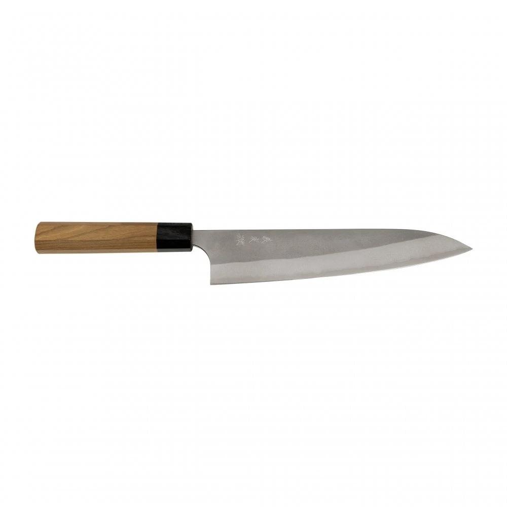 A core of Super Aogami/Blue Paper steel, is sandwhcied, San Mai style between two stainless steel layers. Having learnt from his father, the famous Hiroshi Kato, despite being handmade, these knives are also extremely well finished with no imperfections. The blades are given a Nashji finish, or a dull satin mottled finish, which is quite pretty to view and has a lovely textured feel. Known for producing particularly special knives, any of his blades would sit proudly at the top of your collection.